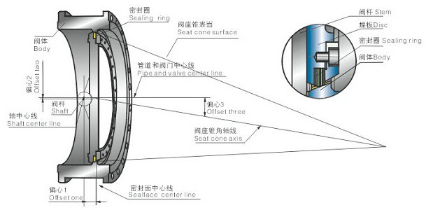 氣動三偏心蝶閥結構原理: